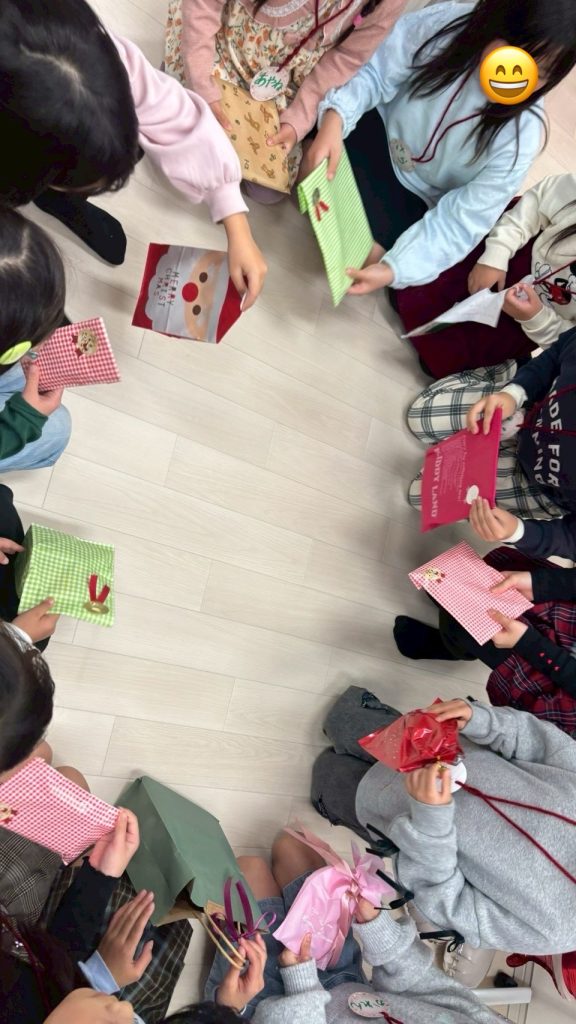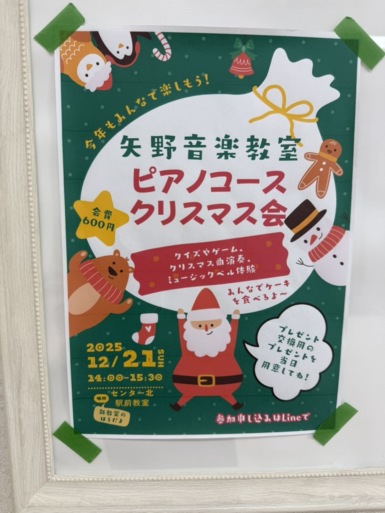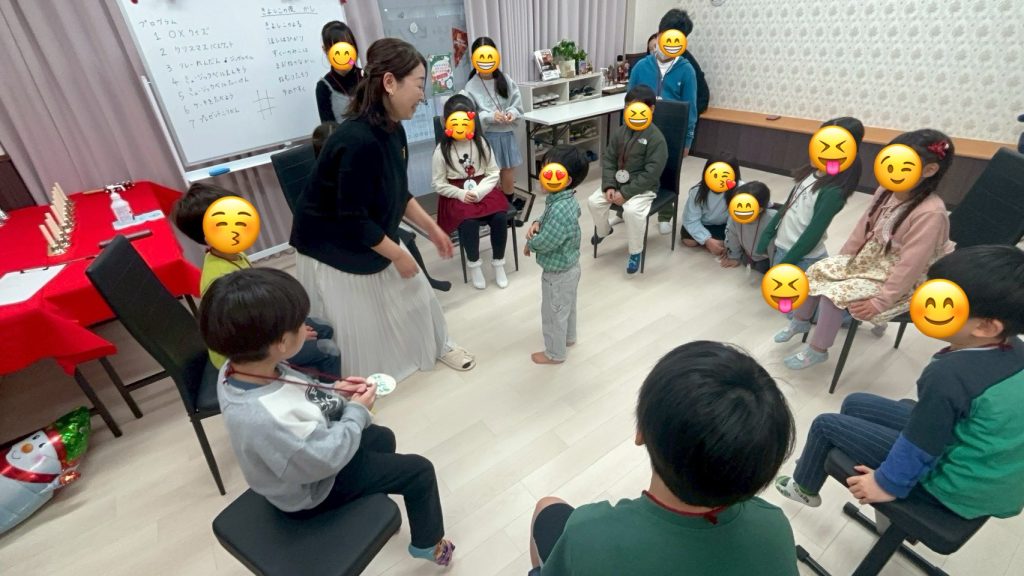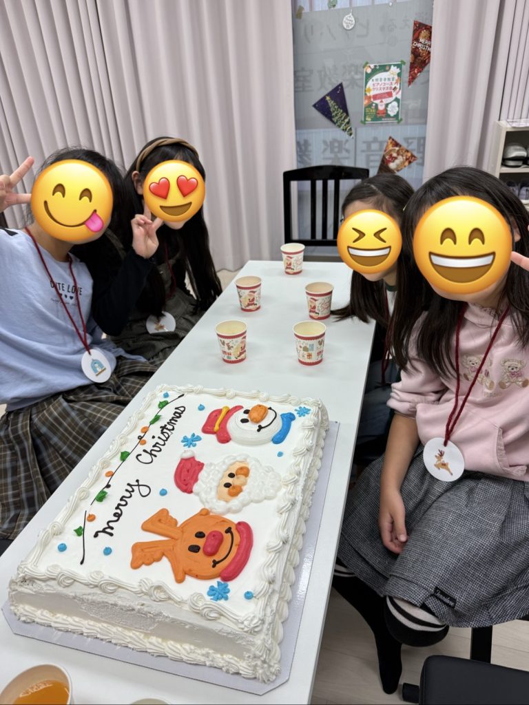 クリスマス会開催 ピアノ教室 2025.12.31 2025年12月21日(日)に、毎年恒例ピアノコースのクリスマス会を行いました!ゲーム、ミュージックベル体験、プレゼント交換などを行い、とても楽しい時間を過ごしました。大きなケーキは、みんなでおかわりして食べましたー