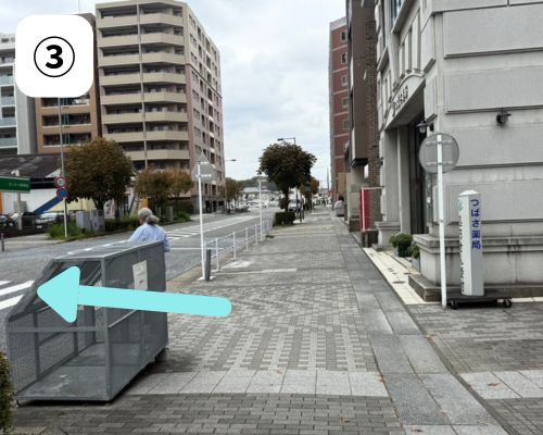 ③ つばさ薬局さんの前で左に折れ、横断歩道を渡ります。