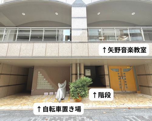 ※ベビーカーは、2階教室入り口前のスペースに置くことができます。また、1階にある矢野音楽教室専用の自転車置き場にも置くこともできます。