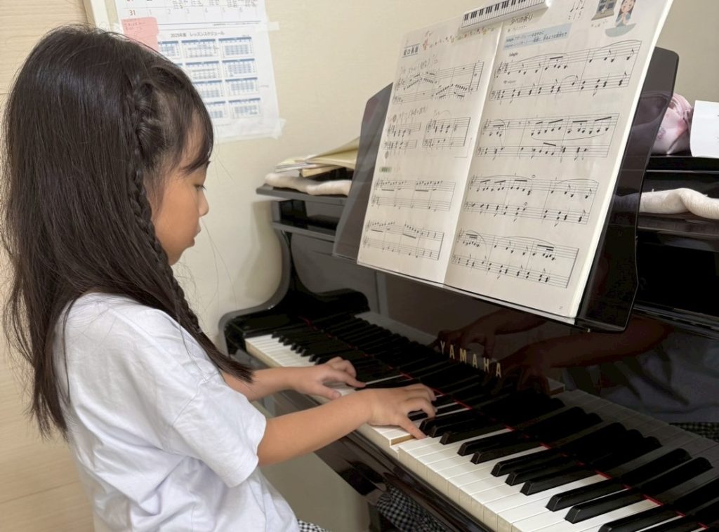 教材は、まいぴあの、オルガンピアノの本1、ピアノ弾けるよジュニア、バイエル上、りずむの本、などから選びます。